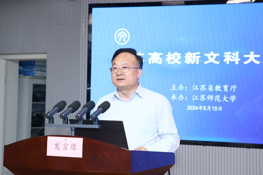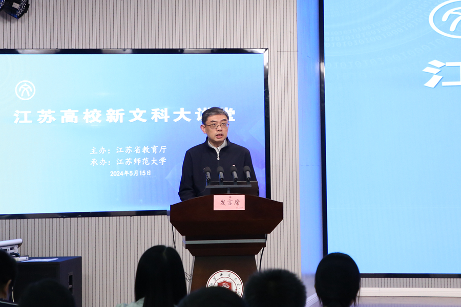 楊樹兵在活動開幕式上講話。他指出,推進(jìn)江蘇高校新文科建設(shè)要積極落實新文科建設(shè)“四大計劃”。2023年10月,江蘇出臺《關(guān)于加快推進(jìn)本科高校新文科建設(shè)的意見》,聚焦推動江蘇高校文科教育邁向更高水平,提出實施“四大計劃”,為江蘇新文科建設(shè)繪制了遠(yuǎn)景藍(lán)圖、規(guī)劃了路線方案、制定了任務(wù)目標(biāo)。全省高校要全面挖掘江蘇文化底蘊(yùn),廣泛邀約學(xué)界、業(yè)界名家大師,著力打造高水平、多模塊、一校一品、一校多品、特色共享的新文科大講堂。要扎實推進(jìn)新文科教育教學(xué)改革。各高校要積極把握新文科建設(shè)的本質(zhì)內(nèi)涵和時代特征,積極以新理念、新方法、新技術(shù)為驅(qū)動,實現(xiàn)對文科教育使命目標(biāo)的重新定位和質(zhì)量變革;圍繞實施江蘇新文科交叉人才培養(yǎng)先鋒區(qū)建設(shè)計劃,加大文科基礎(chǔ)學(xué)科拔尖人才培養(yǎng)基地建設(shè)力度,打造文科拔尖人才自主培養(yǎng)的江蘇方案。要切實加強(qiáng)學(xué)科交叉融合育人。各高校要用好交叉融合的“催化劑”,積極探索跨學(xué)科、跨專業(yè)的文科教育組織新模式,布局一批新興和交叉學(xué)科專業(yè),推動文科專業(yè)之間、文科與理工農(nóng)醫(yī)學(xué)科的深度交叉融合再出新。