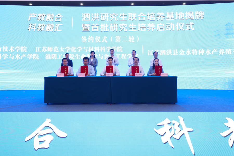 校黨委常委、副校長杜增吉教授出席簽約儀式,代表學(xué)校與泗洪縣人民政府簽訂了《共建研究生聯(lián)合培養(yǎng)基地合作協(xié)議》,并為泗洪研究生聯(lián)合培養(yǎng)基地揭牌。化學(xué)與材料科學(xué)學(xué)院與江蘇泗洪縣金水特種水產(chǎn)養(yǎng)殖有限公司簽訂了《聯(lián)合培養(yǎng)研究生合作協(xié)議》。