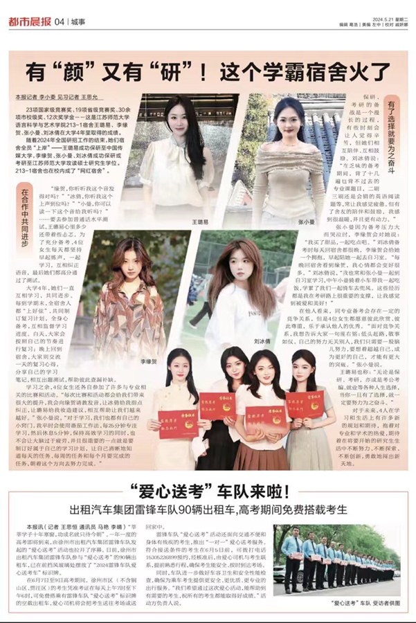 徐州都市晨報5月21日報道我校考研宿舍,報道內容如下: