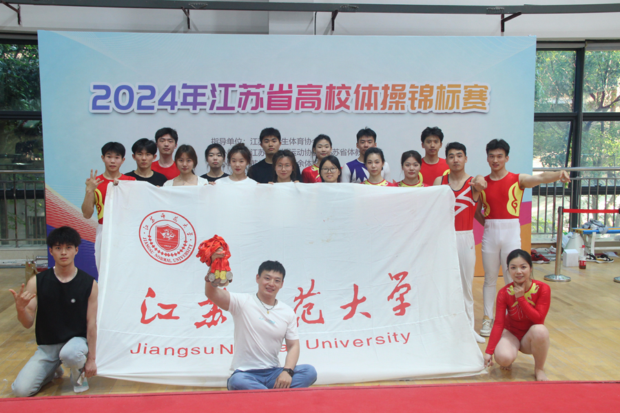 本次比賽共有全省10所院校,180余名選手參加。比賽內容包含集體翻騰、廣播體操、自由體操、跳馬、雙杠、單杠等項目。經過2天的激烈比拼,我校運動員最終獲得2金8銀6銅的優異成績。其中男甲自由體操獲1金1銅、雙杠獲1銀、單杠2銀、跳馬1金1銅、個人全能2銀、團體1銀;女甲團體1銅;男乙雙杠1銀、單杠1銅、團體1銀;廣播體操1銅;集體翻騰1銅。在比賽過程中,我校學子積極備賽、全力以赴,充分展現了江蘇師范大學學生精神飽滿、斗志昂揚、無畏向前的精神風貌,彰顯了青年一代應有的闖勁與銳氣。