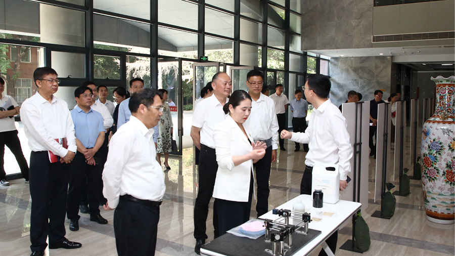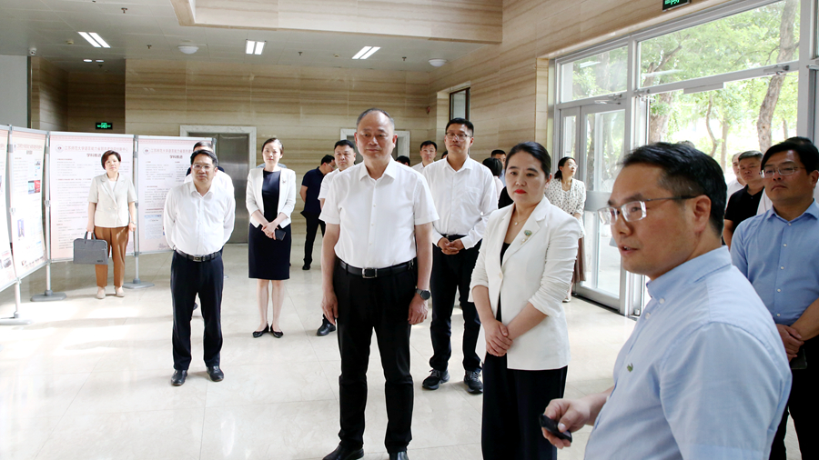 陳婕一行先后來(lái)到我校語(yǔ)言能力省部共建國(guó)家級(jí)協(xié)同創(chuàng)新中心、國(guó)家大學(xué)科技園、江蘇省先進(jìn)激光材料與器件重點(diǎn)實(shí)驗(yàn)室、化學(xué)與材料科學(xué)學(xué)院等處實(shí)地調(diào)研,詳細(xì)了解科學(xué)研究、產(chǎn)教融合、成果應(yīng)用等情況,希望與我校深化合作、攜手共進(jìn),推動(dòng)更多技術(shù)成果在云龍區(qū)落地轉(zhuǎn)化。實(shí)地考察后召開(kāi)了校地融合發(fā)展座談會(huì)。