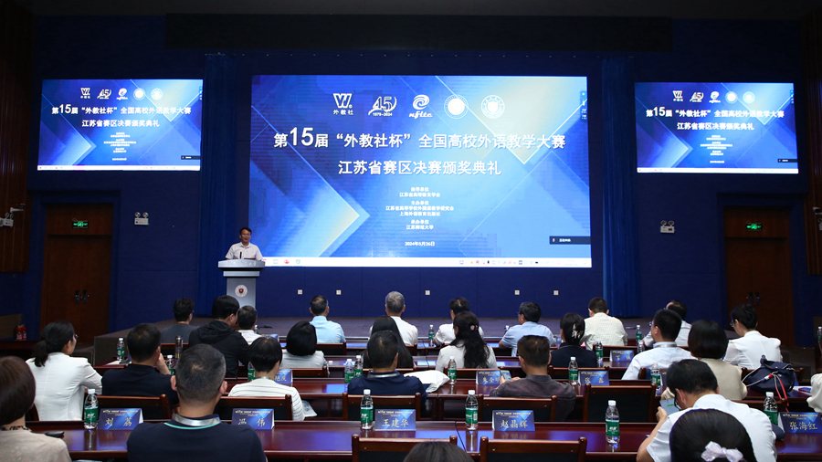 江蘇省高等教育學會會長丁曉昌、江蘇省高等學校外國語教學研究會會長王海嘯、常務副會長李霄翔、秘書長胡永輝、上海外語教育出版社江蘇中心主任黃新炎、江蘇師范大學黨委常委、副校長張其飛以及評委代表出席頒獎禮。