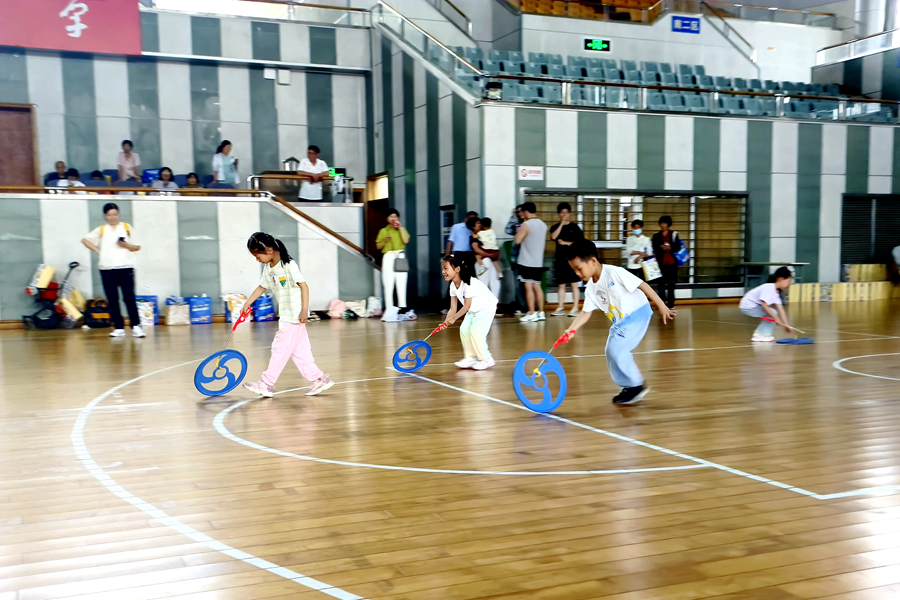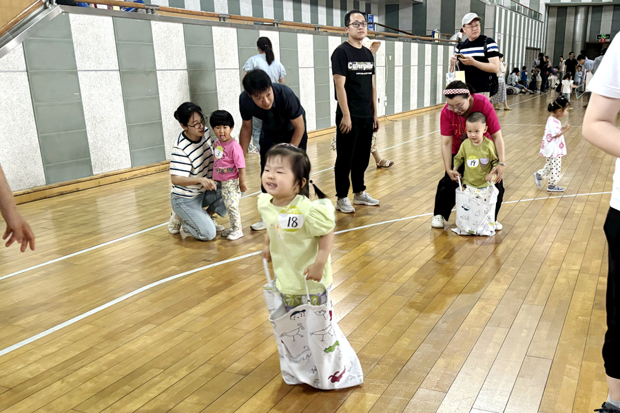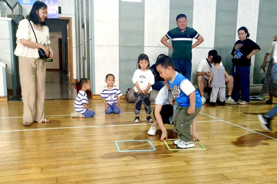 本屆親子運動會主題是“運動悅童心 親子伴成長”,活動預(yù)告一經(jīng)發(fā)布,就受到廣大青年教職工的熱切關(guān)注和積極響應(yīng)。運動會分為兒童組和成人組兩個組別,參賽選手全部由學(xué)校教職工及6歲以下的子女組成,最小的孩子只有6個多月,部分家庭攜兩位子女參賽。根據(jù)選手的年齡特點,兩個組別分設(shè)了袋鼠跳、吉祥娃娃、推鐵環(huán)、拔河等10多個妙趣橫生的項目。家長和孩子們并肩面對每個游戲的挑戰(zhàn),小運動員們天真精彩的表現(xiàn)和家長重溫童樂的喜悅相映成趣,展現(xiàn)了親情互動的歡樂瞬間。加油聲、喝彩聲此起彼伏,充滿了體育館的每個角落。
