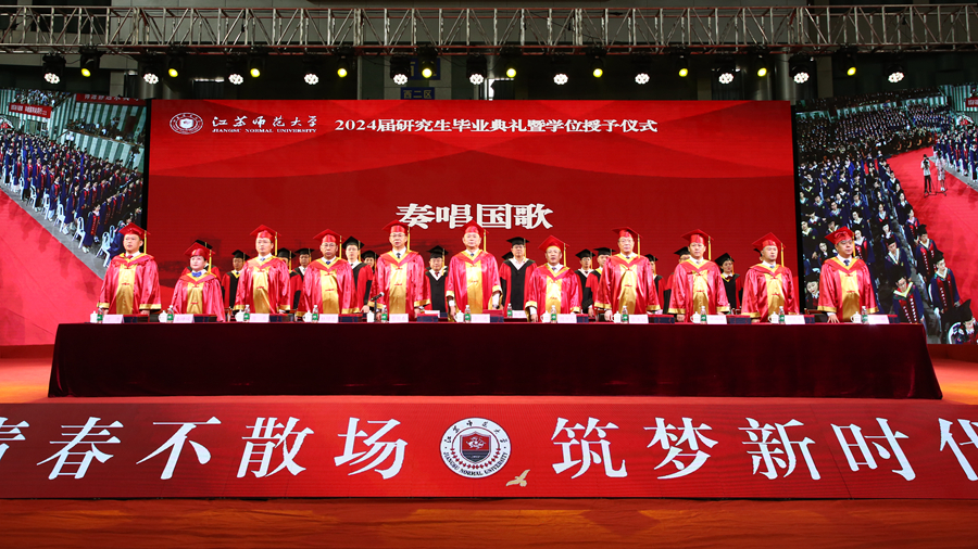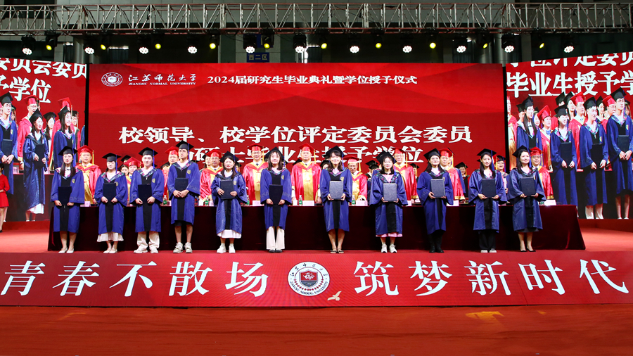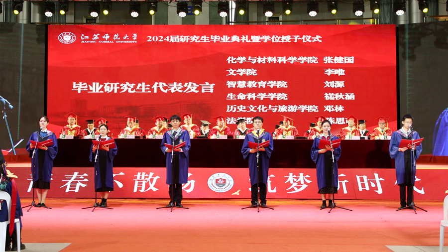 全體2024屆畢業研究生將肩負“江蘇師大人”這個值得珍藏一生的印記,在廣闊的舞臺施展才干,為偉大的祖國建功立業,無懼風雨,奔赴夢想,奮力書寫為中國式現代化挺膺擔當的青春篇章。