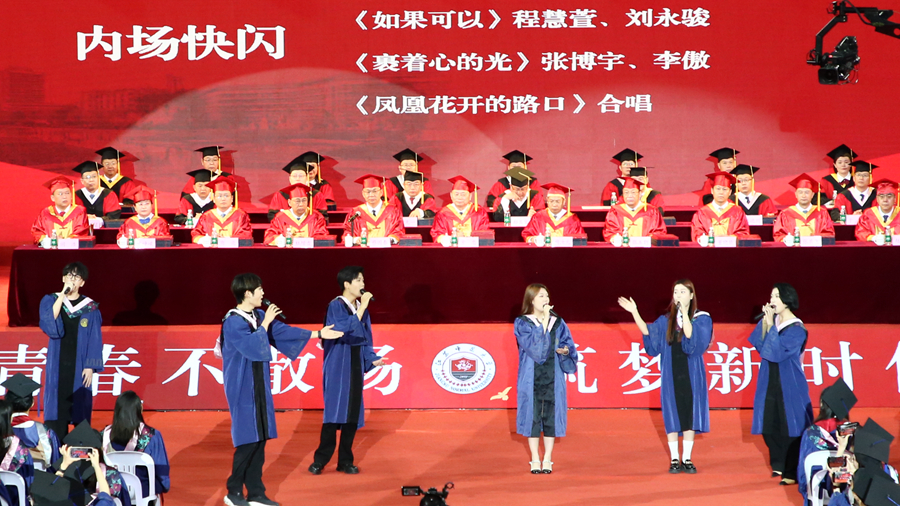 畢業典禮開始前,音樂學院研究生精心準備了快閃節目,表達了對母校的濃濃眷戀與對師友的依依不舍。畢業典禮在熱情洋溢的音樂串燒中圓滿落幕。