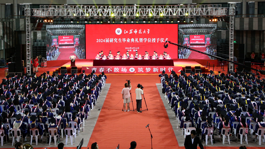 6月14日上午,江蘇師范大學2024屆研究生畢業典禮暨學位授予儀式在泉山校區體育館隆重舉行。全體校領導出席典禮,校學位評定委員會委員、承擔研究生培養任務的各學院領導、研究生導師代表、2024屆全體畢業研究生、研究生親屬代表、非畢業年級研究生代表參加典禮。校黨委副書記蔡國春主持典禮。