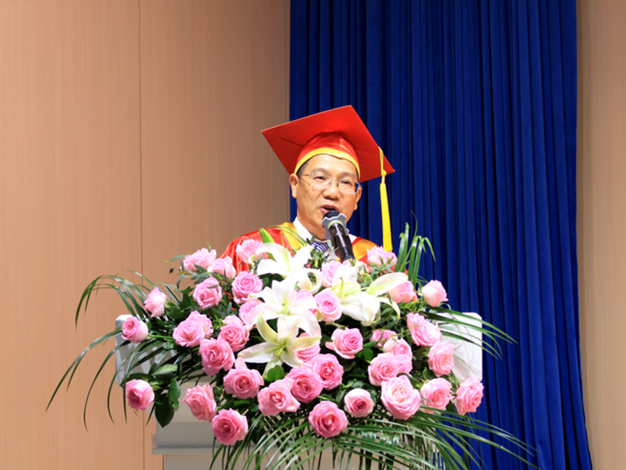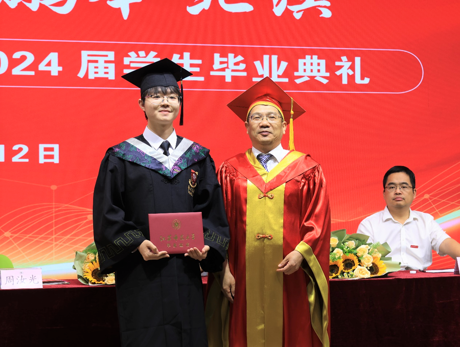 周汝光為畢業生代表授予畢業證書、學位證書并撥穗。