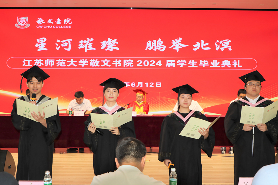 畢業生代表用原創詩朗誦《我曾經,在那時遇見敬文》深情追憶四年里求學生活的點點滴滴,表達了對書院的眷戀與感恩。