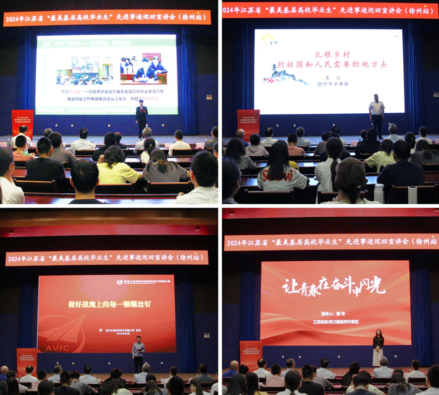 宣講活動中,帶領400多位鄉親致富的“江蘇果牧不忘家庭農場”黨支部書記、總經理,“95后”“新農人”華夢麗;深入一線了解群眾訴求,解決村民出行難題,推動村集體經濟發展,被群眾們稱為“貼心人”的邳州市官湖鎮人民政府副鎮長裘宗;扎根企業生產一線,秉持精益求精的工作態度,不斷鉆研生產制造技術,高質量完成30多項技術攻關,為建設航空強國積極貢獻青春力量的蘇州長風航空電子有限公司工藝員陳瑋;通過“三支一扶”計劃開啟追夢之旅,助力社區特色種植項目擴產提質,幫助企業成功申報省雙創團隊,助力當地經濟高質量發展的如東洋口港經濟開發區黨政辦主任唐玲分別結合個人成長歷程,分享了基層一線工作創業的故事。他們用樸實的語言,真摯的情感,講述了將小我融入大我,將青春獻給祖國的精彩故事,贏得了現場師生們的熱烈掌聲。
