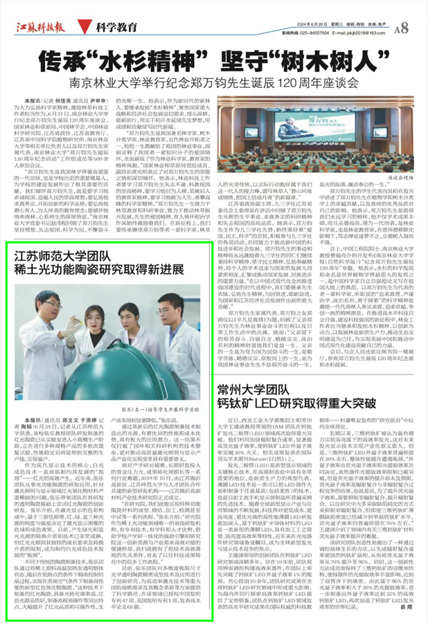 江蘇師范大學團隊稀土光功能陶瓷研究取得新進展