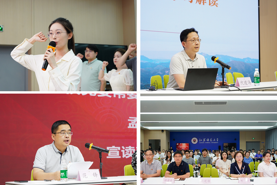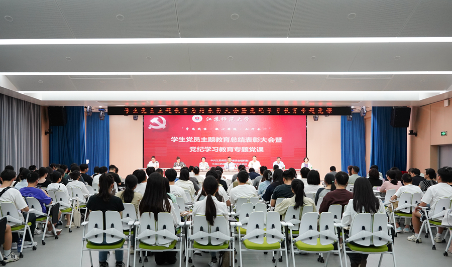 值中國共產黨成立103周年之際,7月1日下午,江蘇師范大學在路演大廳舉辦“學思踐悟·凝心鑄魂·知行合一”學生黨員主題教育總結表彰大會暨黨紀學習教育專題黨課。學校相關職能部門負責人、各學院黨委副書記、學生黨員以及發展對象代表約120余人參加。
