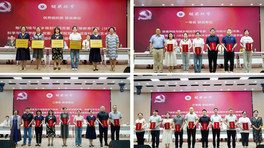 校黨委常委、宣傳部部長孟召學宣讀了表彰文件。馬克思主義學院黨委等9家單位獲三等獎,歷史文化與旅游學院黨委等8家單位獲二等獎,地理測繪與城鄉規劃學院黨委等6家單位獲一等獎。智慧教育學院(計算機科學與技術學院 )黨委等5家單位獲優秀組織獎。校團委書記李丹,黨委離退休部部長張吉東,黨委研究生工作部部長王本賢,黨校常務副校長、黨委組織部副部長湯永懌分別為獲獎單位代表頒發證書及獎牌。