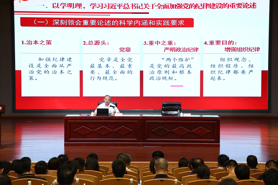 7月4日下午,校黨委書記方忠以《扎實開展黨紀學習教育 為學校高質量發展提供堅強政治保證》為題,為全校中層領導干部上了一堂生動的黨紀學習教育專題黨課。在校全體校領導、全校中層干部聆聽了黨課。校黨委副書記、校長周汝光主持黨課。