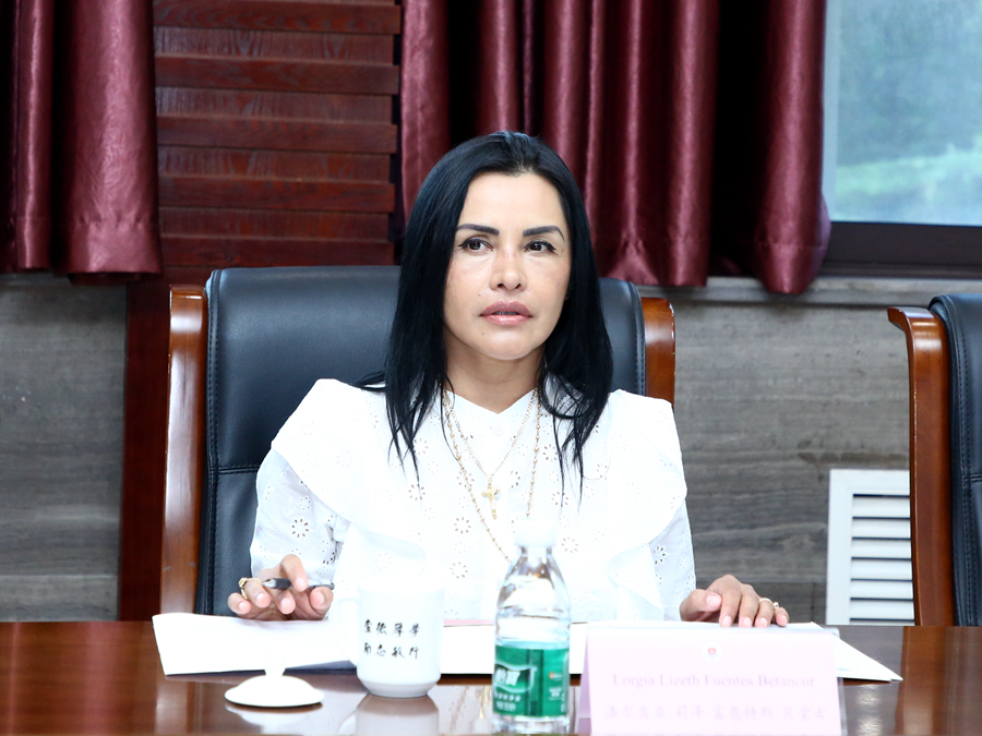 周汝光對代表團的來訪表示熱烈歡迎,并介紹了學校的基本情況和國際合作交流成果。他指出,學校特別重視與拉美國家高校的友好合作交流。學校主辦或承辦的“一帶一路國際話語論壇”“中拉文明對話論壇”等國際會議吸引了來自拉美七國大使或總領事參加交流活動。學校今年5月與玻利維亞國家科學院進行了線上會談。他期待,通過此次面對面交流,雙方能在科學技術、“一帶一路”國際合作研究及人文交流等領域開展更加廣泛深入的合作。