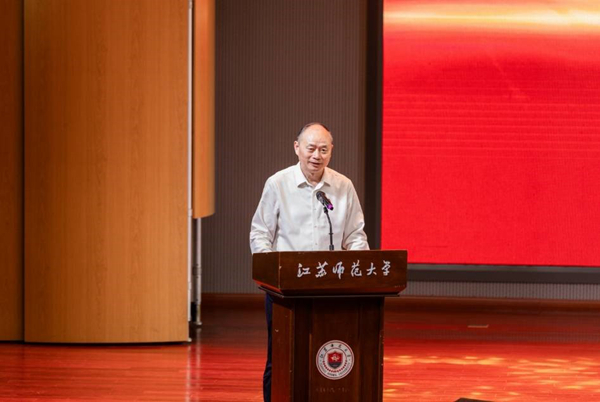 江蘇師范大學(xué)黨委書(shū)記、徐州市作家協(xié)會(huì)主席方忠在朗誦會(huì)上致辭。