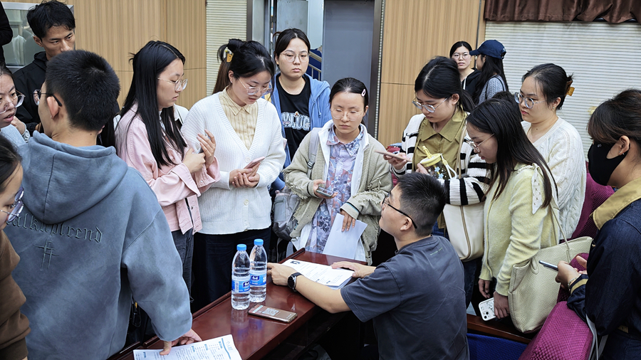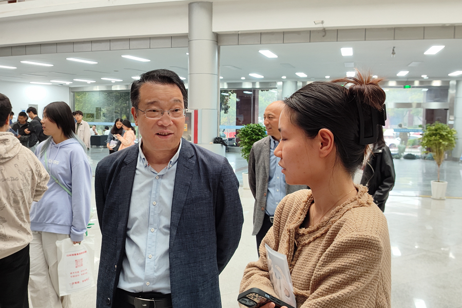 儀式結束后,張玉勤一行到第二期“月末人才集市”暨蘇州市專場招聘現場,與招聘單位人員和求職學生交流交談,了解企業人才招聘條件和需求趨勢變化,鼓勵畢業生科學設定求職目標、把握求職黃金期、爭取早日就業。