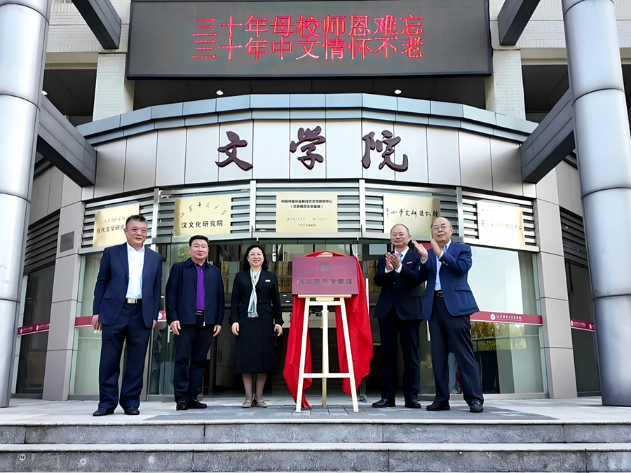 儀式上,中文94屆任課教師代表方忠、徐放鳴和中文94屆校友代表李文林、胡忠秀、陳碩共同為院史館揭牌。李鳳亮校友代表中文90(1)班向學院捐贈了寓意人才培養碩果累累的石灣荔枝陶塑,胡忠秀校友代表中文90(2)班向學院捐贈了寓意魚躍龍門、蒸蒸日上的工藝品,陳碩校友代表中文92專科班向學院捐贈了嵌藏學院院訓的原創詩歌、書法藝術作品,校友們還分別以班級、年級為單位認捐了學校的校友林,并向學院捐贈了獎教金。文學院向每位校友回贈了精心設計的文創紀念品。儀式結束后,校友們在講解人員引導下,逐一參觀了院史文化墻、院史資料珍藏館、新時代文學研究中心、中國鄉村志文化研究中心等文學院展館群,并在下午舉行了氣氛熱烈的師生見面會。
