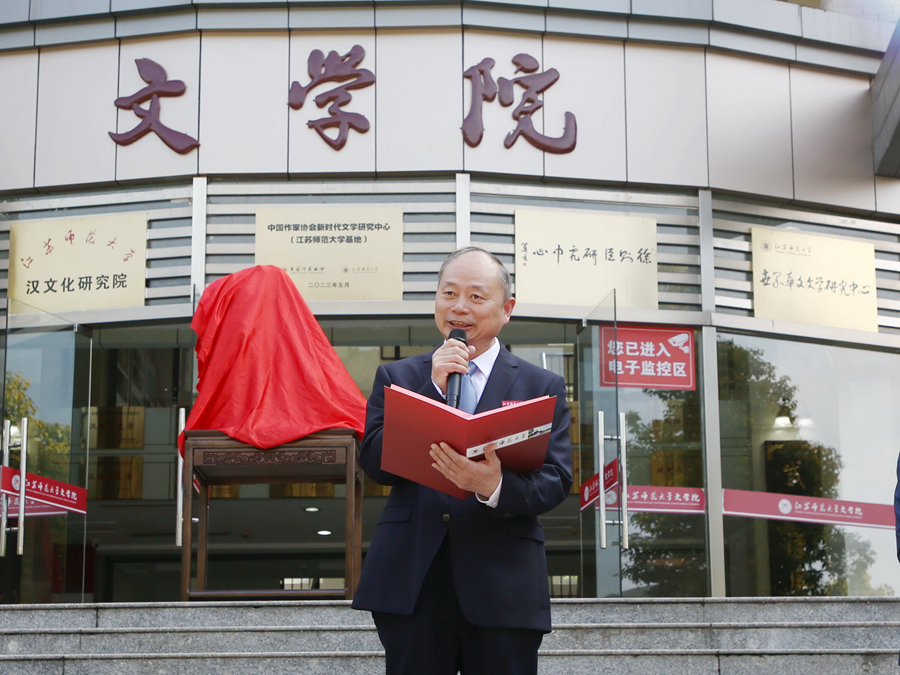 10月26日,我校在西教11號樓前舉行文學院院史館揭牌暨1994屆中文校友捐贈儀式。校黨委書記方忠、中文系教師代表徐放鳴、寇立光、趙興勤、吳建民、張淑美,校鹽城校友會會長、中文83級校友吳德東,校蘇州校友會會長、中文98級校友王建波,中文94屆參加秩年返校活動的全體校友出席活動。