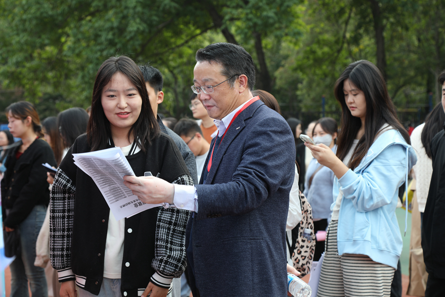 張玉勤和黃煒等領(lǐng)導(dǎo)老師也來到現(xiàn)場走訪調(diào)研,了解用人單位的基本概況、發(fā)展規(guī)模以及招聘安排等,開展了“訪企拓崗”,積極推薦我校畢業(yè)生。他們還與現(xiàn)場畢業(yè)生們進行交流,了解他們的就業(yè)意愿和就業(yè)規(guī)劃,指導(dǎo)求職學(xué)生完善簡歷,鼓勵他們樹立正確的擇業(yè)和就業(yè)觀念,積極響應(yīng)“服務(wù)新質(zhì)生產(chǎn)力”的號召,將個人成長融入國家、社會發(fā)展的大局之中,為自己的科技創(chuàng)新、專業(yè)技能、綜合素養(yǎng)找到施展的舞臺。