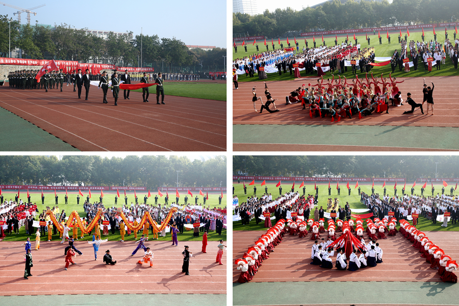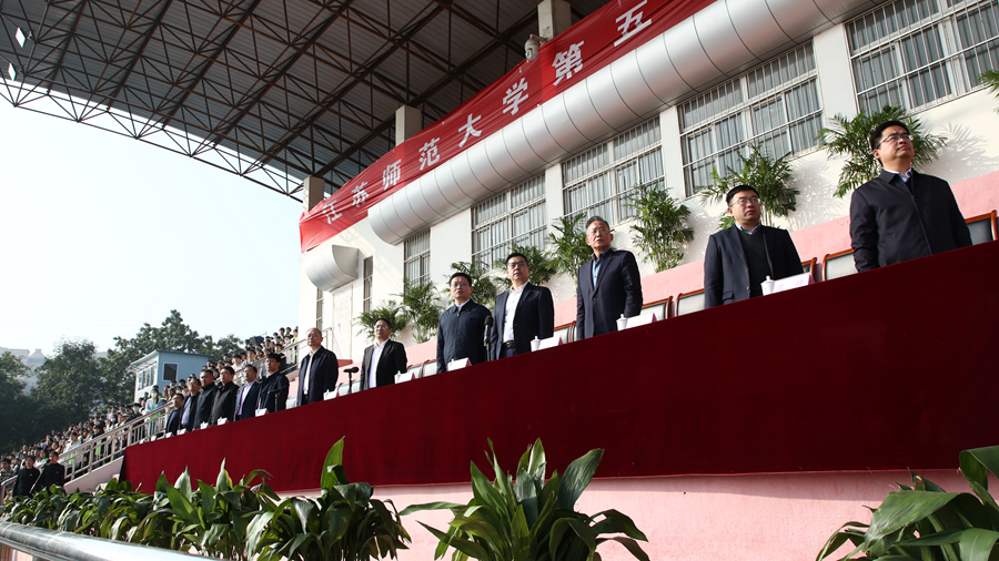 10月31日上午,運(yùn)動(dòng)會(huì)舉行了開(kāi)幕式,全體在校校領(lǐng)導(dǎo)以及校體育委員會(huì)全體委員出席開(kāi)幕式。開(kāi)幕式上,各代表隊(duì)依次入場(chǎng),進(jìn)行了精彩紛呈又富有各學(xué)院專(zhuān)業(yè)特色的體育文化展示,充分展現(xiàn)了江蘇師范大學(xué)青年學(xué)子的青春風(fēng)采。展演結(jié)束后,舉行了莊嚴(yán)的升國(guó)旗儀式,運(yùn)動(dòng)員和裁判員代表分別宣誓,將以真誠(chéng)的競(jìng)賽態(tài)度,公平的體育精神,良好的競(jìng)技與工作狀態(tài),認(rèn)真比賽,公正裁判,確保圓滿(mǎn)完成各項(xiàng)賽事。