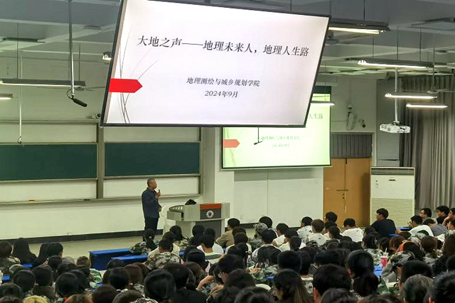 9月26日晚,校關(guān)工委黨建輔導組組長、原城市與環(huán)境學院黨委書記車先俊受邀為地理測繪與城鄉(xiāng)規(guī)劃學院的新生們作了“地理未來人,地理人生路”的專題講座。車書記結(jié)合學校歷史發(fā)展沿革和個人人生經(jīng)歷體會,深情回憶了自己與地測學院的情感聯(lián)系。他從我心中的地理學、大學如何規(guī)劃、立足現(xiàn)實和放眼未來等方面與同學們進行了深入交流。他指出,人生看起來很漫長,但關(guān)鍵性的階段就那幾年,每一位同學都是自己人生的建筑師、設(shè)計師。在日常生活中,師生情、同學情是人生中最為純潔的情感,他教導同學們要遵章守紀,心態(tài)平和,學會容人、容事、容己,珍惜大學時光擁有的美好緣分。“自立自強、永不言棄,盡心盡力、終身無悔”,這是車書記給予大一新生們最好的人生饋贈。