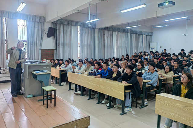 10月23日下午,原數(shù)學系主任、校老年科協(xié)原秘書長、校關(guān)工委講師團原理科組組長戴朝壽教授應(yīng)邀為數(shù)學與統(tǒng)計學院2024級新生作了題為“讓青春在大學階段踏踏實實有意義地度過”的專題講座。戴教授系統(tǒng)闡述了數(shù)學在現(xiàn)代科學技術(shù)中的重要地位,并從確立好世界觀、人生觀、價值觀等方面提出了具體要求。他鼓勵同學們牢記“勤可補拙,靜能生慧”,早立目標、做好規(guī)劃,善于思考、培養(yǎng)靈氣,堅守初心、腳踏實地。戴教授的報告蘊含了詳實的歷史史料和豐富的教學經(jīng)驗,深入淺出、通俗易懂,贏得了同學們的一致好評。最后,他以一曲《世界是你們的》引發(fā)了同學們的陣陣掌聲和強烈共鳴。