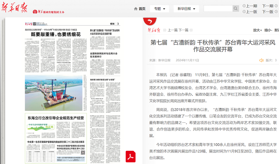 新華日報11月11日報道在我校舉辦的第七屆“古漕新韻千秋傳承”蘇臺青年大運河采風作品交流展開幕式,報道內容如下: