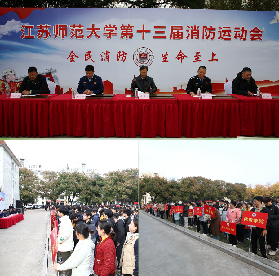 為切實提升廣大師生員工的消防安全素質和自救互救能力,11月20日下午,學校第十三屆消防運動會在泉山校區敬文圖書館北側足球場成功舉辦。校黨委常委、副校長張其飛,徐州市消防救援支隊火調技術科科長汪永路、副科長王中參,駐校四級高級警長周廣文,保衛處、體育學院等單位負責同志出席開閉幕式,全校30個代表隊500余名運動員參加比賽。