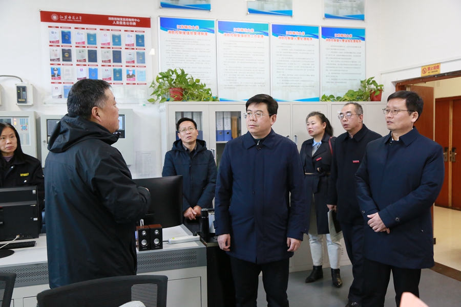 匯報會結束后,檢查組仔細查閱了學校安全工作臺賬資料,并先后來到物理與電子工程學院實驗室、消控指揮中心、泉山校區東大門、110指揮中心、玉泉河餐廳等重點部位和場所現場檢查。檢查組充分肯定了學校在消防安全隱患排查整治、實驗室安全管理、校園技防能力建設及全覆蓋開展安全教育演練等方面取得的成績,并就進一步做好校園安全管理工作提出意見和建議。