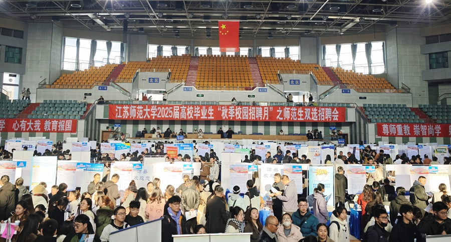 12月2日下午,2025屆高校畢業生“秋季校園招聘月”系列活動之師范生雙選招聘會在我校泉山校區體育館舉辦,校黨委常委、副校長商亮,省高校招生就業指導服務中心、參展教育單位招聘工作人員,我校學生工作處、研究生工作部負責同志,各學院黨委副書記、畢業班輔導員、班主任及3600余名師范類畢業生參加招聘活動。