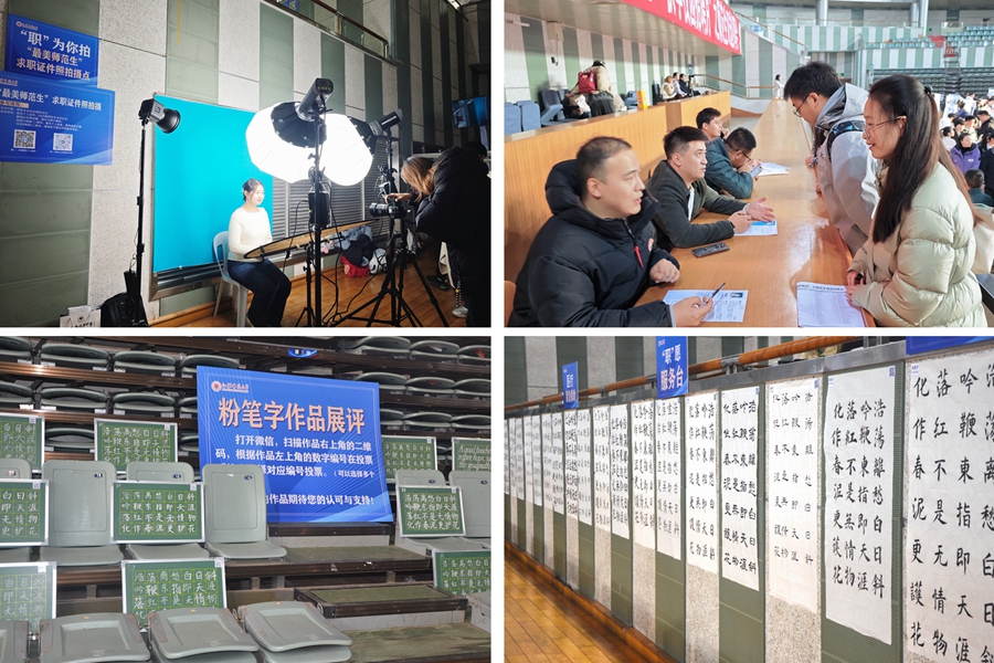 在招聘會現場還設立了“職愿”服務臺,為畢業生提供證件照拍攝、簡歷問診、模擬面試、求職正裝租用等一站式服務。就業指導老師在現場為畢業生們開展了“一對一”咨詢指導,幫助求職畢業生修改完善簡歷、提升面試技能。現場還舉辦了師范生教育特色展,展出了在校師范生的粉筆字、毛筆字作品,同時也展出了我校“十佳師范生”、從教師范類畢業生的事跡與風采。淮安市教育局、浙江省浦江縣教育局隨后與組團招聘學校工作人員共同開展了面試考察和說課考核;淮安天山外國語學校、高郵市朝陽學校、常州市宋劍湖高級中學等十余所學校開展應試求職畢業生的考核工作。