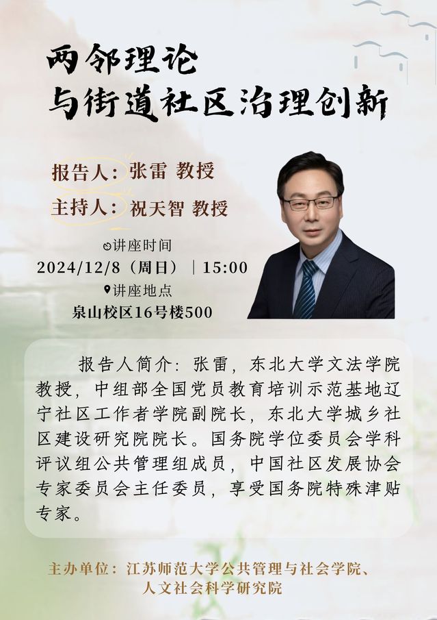 12月8日 張雷教授學術講座(公共管理與社會學院)