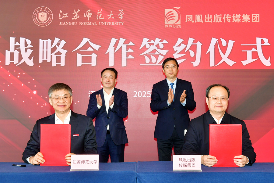 1月17日下午,我校與江蘇鳳凰出版傳媒集團合作簽約儀式在南京舉行。校黨委書記芮國強,校黨委副書記蔡國春,校黨委常委、宣傳部部長孟召學,鳳凰出版傳媒集團黨委書記、董事長章朝陽,集團總經理、黨委副書記李貞強,集團副總經理、現代快報報社社長屠法等出席儀式。