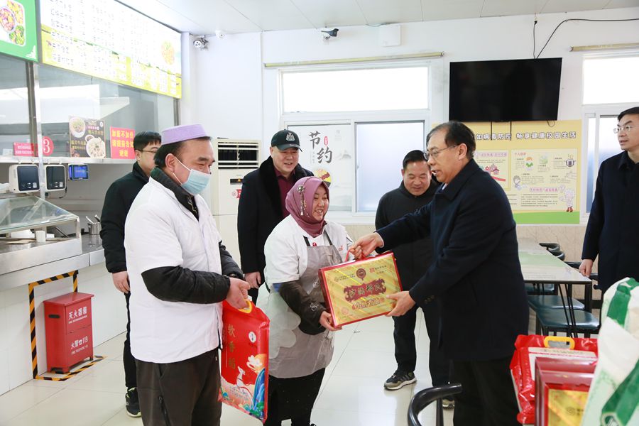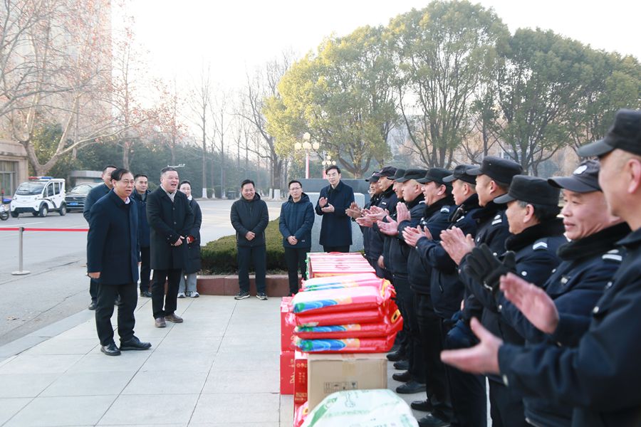 1月29日,乙巳蛇年正月初一,校長杜增吉帶隊走訪慰問春節(jié)期間堅守崗位的教職工和寒假留校學(xué)生,代表學(xué)校向他們致以誠摯問候和新春祝福。校長辦公室、工會、后勤管理處、保衛(wèi)處、后勤集團等單位負(fù)責(zé)人陪同。