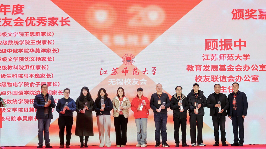 活動(dòng)伊始,無錫校友會(huì)精心制作的主題視頻《同一首歌》,以“一條路,同一首歌”為主線,串聯(lián)起校友會(huì)20年的發(fā)展歷程與校友們的共同記憶。無錫校友會(huì)會(huì)長(zhǎng)鄭磊在致辭中表示,從2005到2025,在廣大校友的積極參與和努力下,無錫校友會(huì)始終堅(jiān)持服務(wù)校友、服務(wù)母校、服務(wù)社會(huì)的辦會(huì)宗旨,開展了系列活動(dòng),收獲了很多感動(dòng),未來將繼續(xù)搭建服務(wù)平臺(tái),助力校友成長(zhǎng)與母校發(fā)展。頒獎(jiǎng)典禮上,芮國(guó)強(qiáng)、商亮等領(lǐng)導(dǎo)和嘉賓分別為無錫校友會(huì)“20周年榮譽(yù)人物”和2024年度“優(yōu)秀校友”“優(yōu)秀家長(zhǎng)”“優(yōu)秀學(xué)生”頒獎(jiǎng)。
